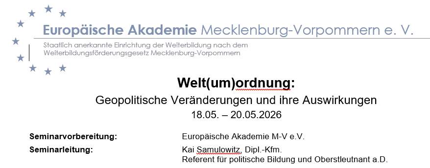 Welt(um)ordnung: Geopolitische Veränderungen und ihre Auswirkungen (18.05. – 20.05.2026)